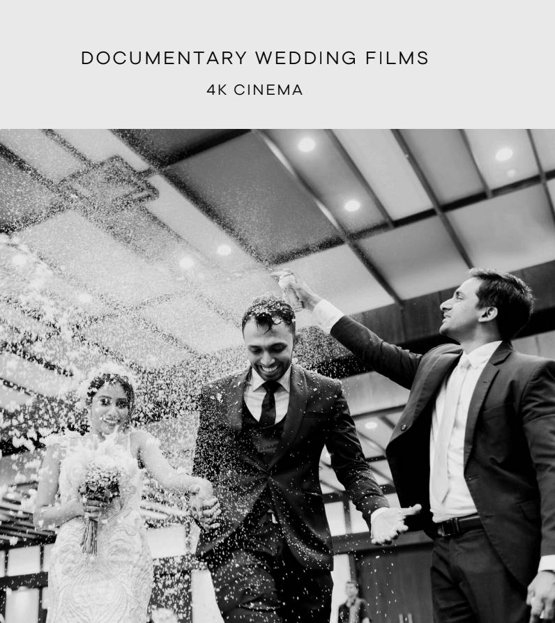 Bride's whilst getting ready at the hotel Groom's whilst getting ready at the hotel Main video session at a preferred location Wedding Ceremony & Reception One day coverage (12 hours) Three cameras with active three cameraman Dedicated Audio Recording with Wireless Mics/Field Recoders 4k output 5 min 4K trailer 90 min full hd movie Usb output (wooden pen around 64gb) with extra data file Traveling free in Colombo area